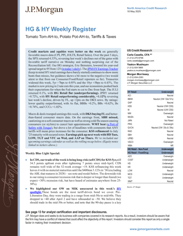 【J.P. Morgan】【20250516】高评级和高收益债券每周报告:番茄、土豆、关税和税收-18页 行业研究