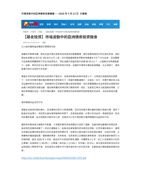【光大证券国际产品开发及零售研究部】【202603】市场波动中的亚洲债券投资机会-1页 证券期货研究报告