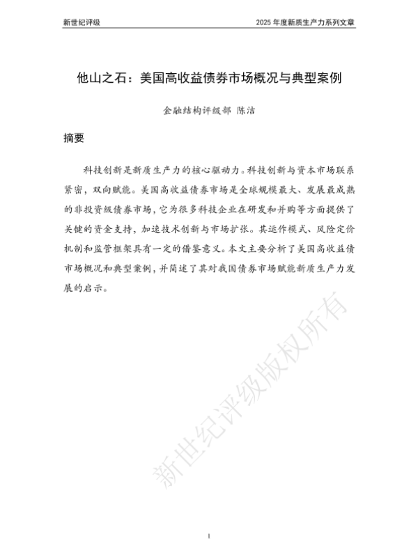 【新世纪评级】【2025】他山之石:美国高收益债券市场概况与典型案例-16页 行业研究