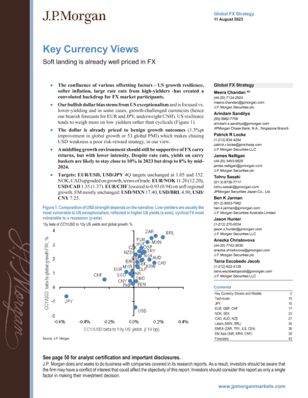 【J.P. Morgan】【20230811】关键货币观点:软着陆已经充分反映在外汇中-14页 行业研究