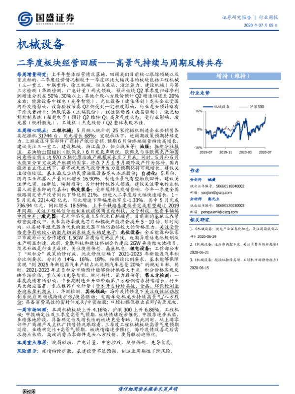 【国盛证券】【20200705】20200705-国盛证券-机械设备行业周报:二季度板块经营回顾——高景气持续与周期反转共存-12页 行业研究