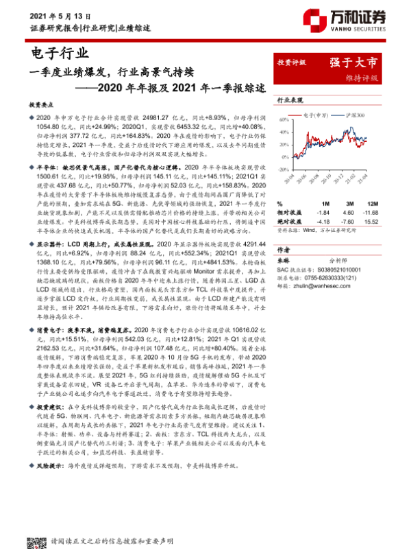 【万和证券】【20210513】20210513-万和证券-电子行业2020年年报及2021年一季报综述:一季度业绩爆发,行业高景气持续-16页 行业研究