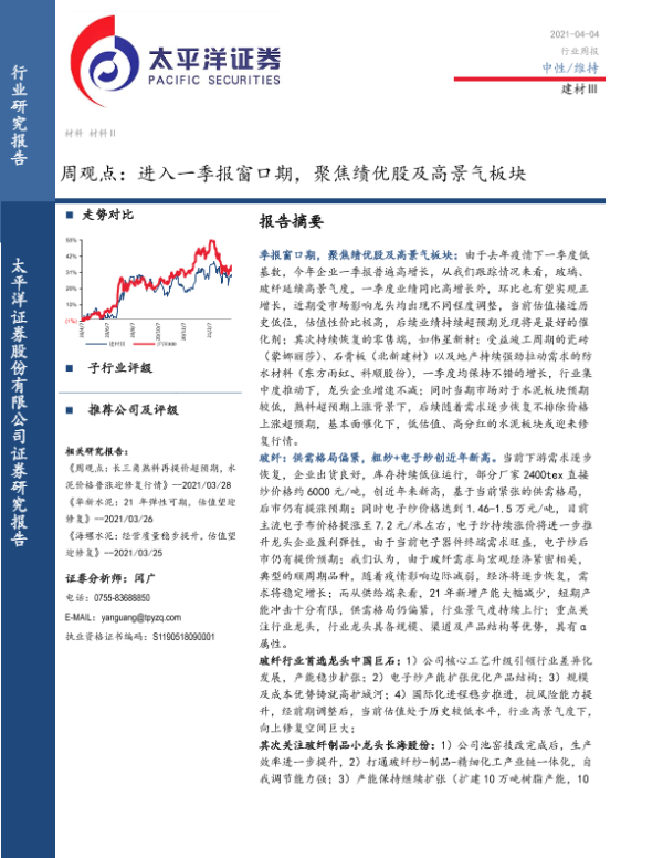【太平洋证券】【20210404】建材Ⅲ周观点:进入一季报窗口期,聚焦绩优股及高景气板块-20页 行业研究