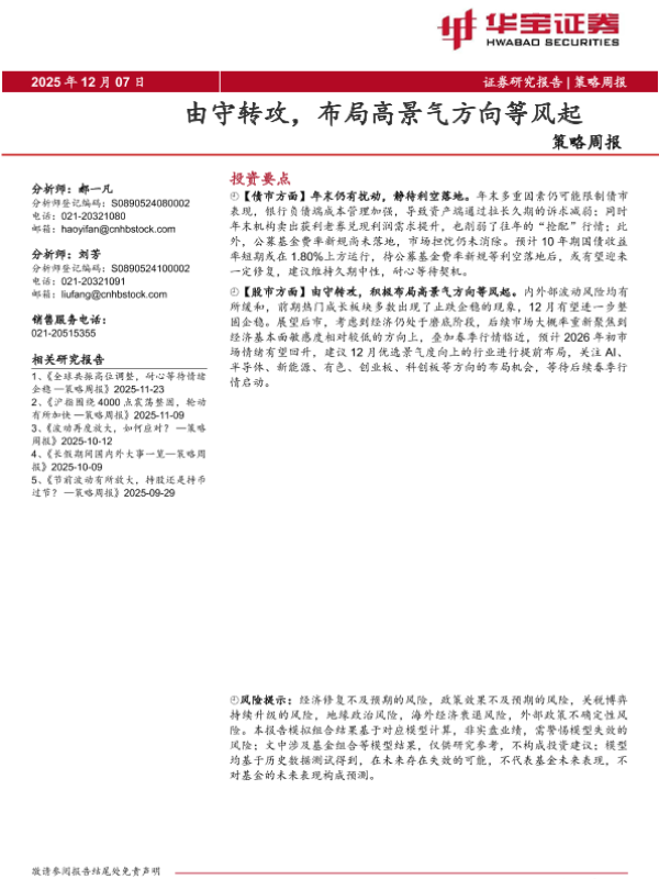 【华宝证券】【202512】由守转攻,布局高景气方向等风起-9页 证券期货研究报告