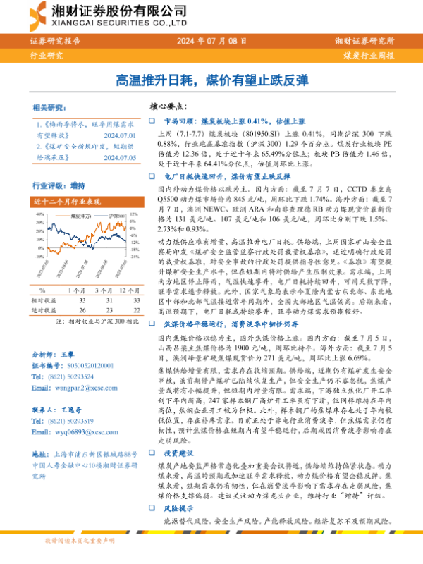 【湘财证券】【20240708】20240708-湘财证券-煤炭行业周报:高温推升日耗,煤价有望止跌反弹-14页 行业研究