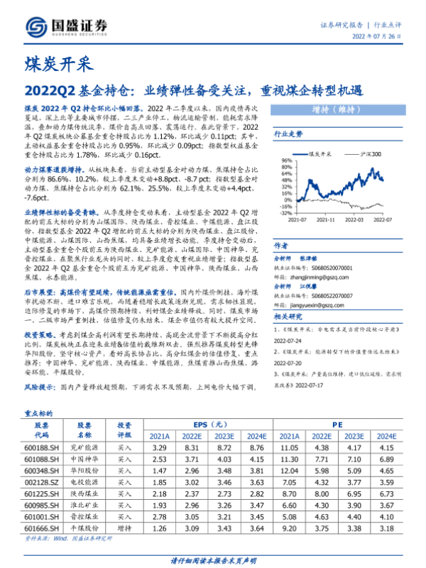 【国盛证券】【20220726】2022Q2基金持仓:业绩弹性备受关注,重视煤企转型机遇-5页 行业研究