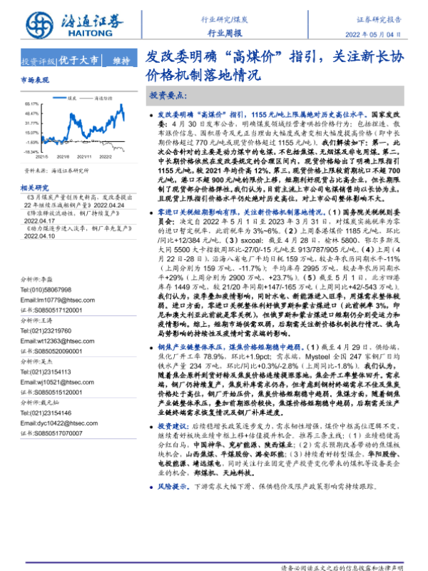 【海通证券】【20220504】20220504-海通证券-煤炭行业周报:发改委明确“高煤价”指引,关注新长协价格机制落地情况-2页 行业研究