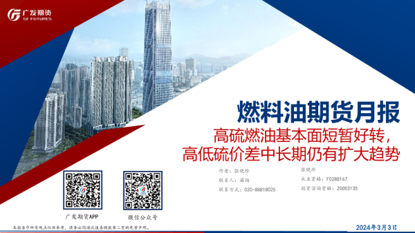 【广发期货】【20240303】燃料油期货月报:高硫燃油基本面短暂好转,高低硫价差中长期仍有扩大趋势-20页 行业研究