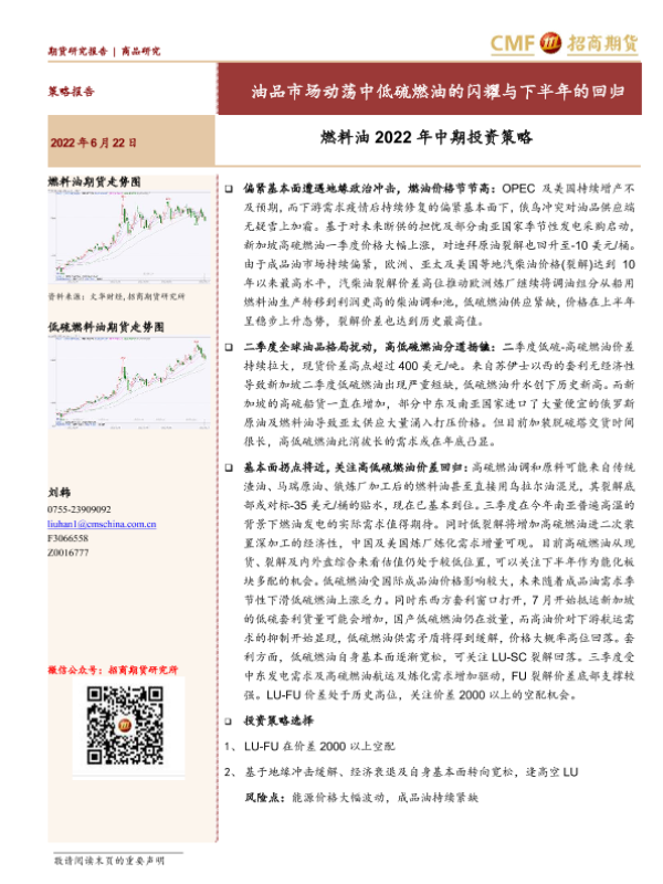 【招商期货】【20220622】燃料油2022年中期投资策略:油品市场动荡中低硫燃油的闪耀与下半年的回归-22页 行业研究