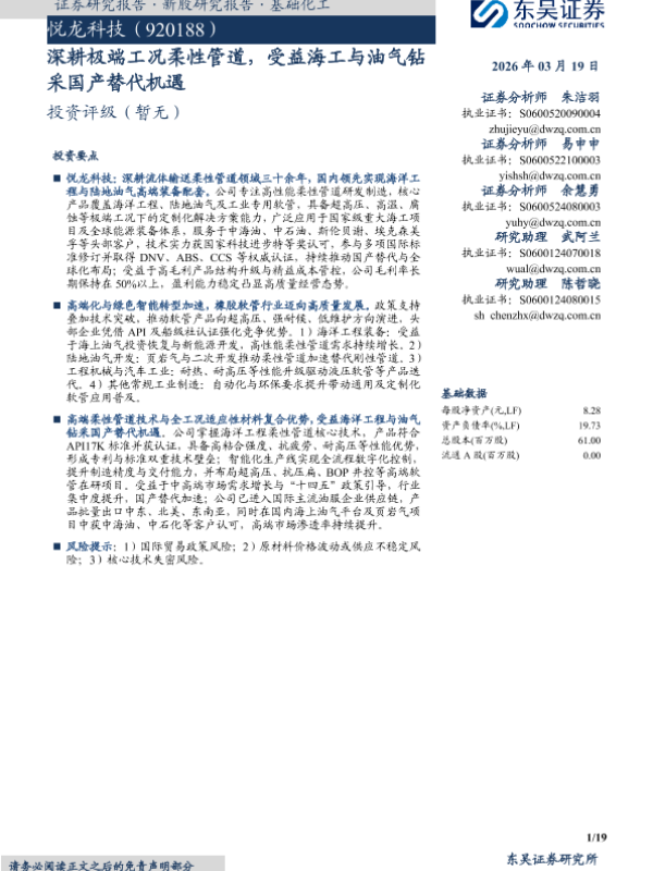 【东吴证券】【202603】深耕极端工况柔性管道,受益海工与油气钻采国产替代机遇-19页 证券期货研究报告