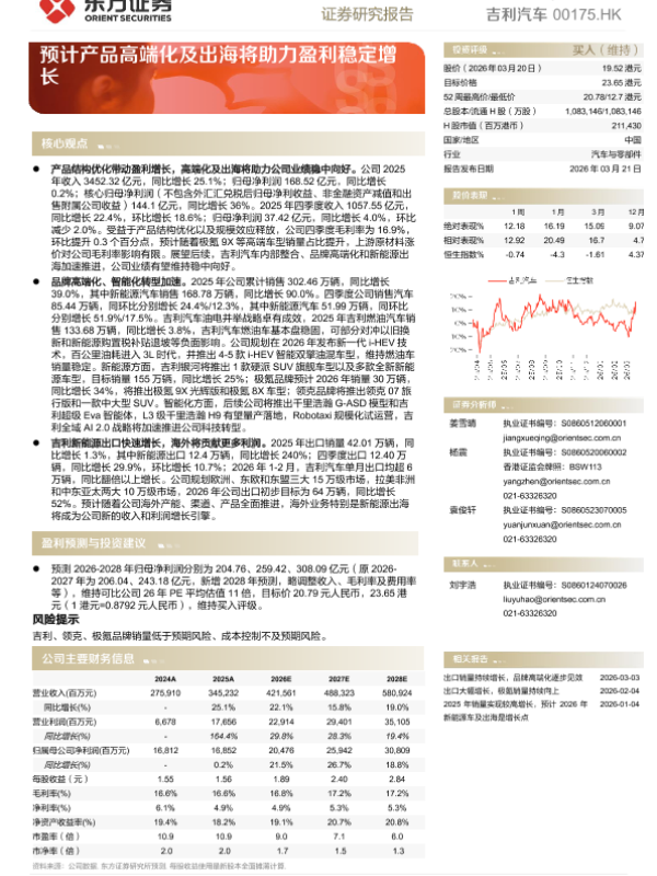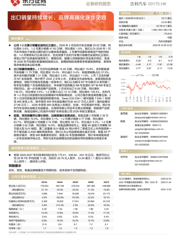 【东方证券】【202603】吉利汽车动态跟踪——出口销量持续增长,品牌高端化逐步见效-4页 证券期货研究报告
