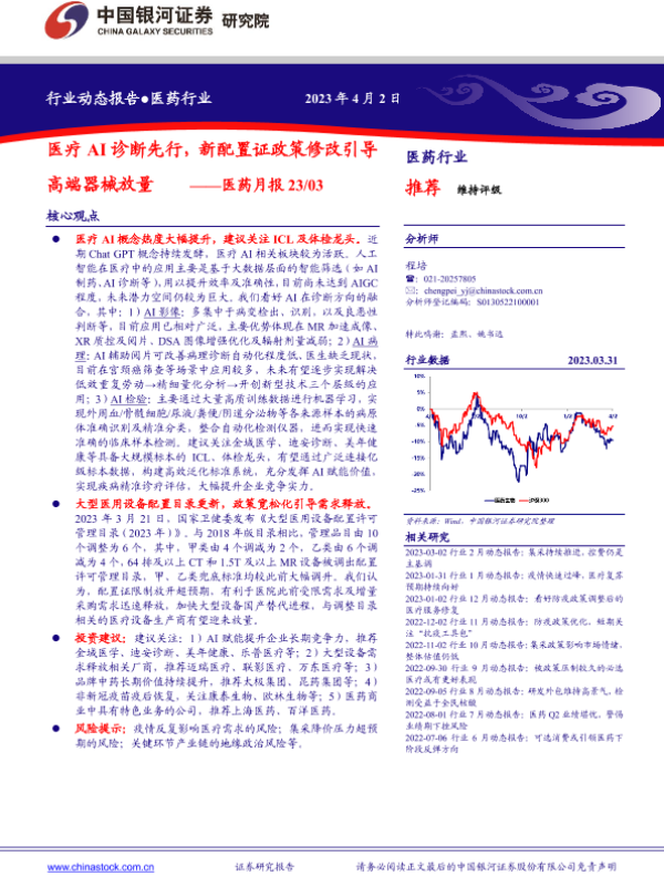 【银河证券】【20230402】医药月报:医疗AI诊断先行,新配置证政策修改引导高端器械放量-28页 行业研究