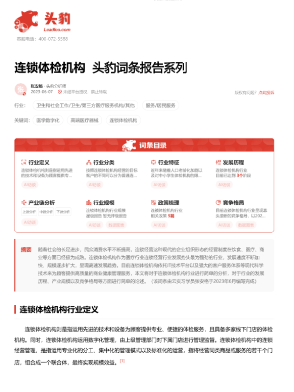 【头豹研究院】【20230912】连锁体检机构 头豹词条报告系列-13页 行业研究
