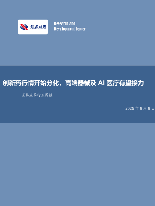 【信达证券股份有限公司 CINDA SECURITIES CO.<D】【202509】创新药行情开始分化,高端器械及 AI医疗有望接力-22页 行业研究