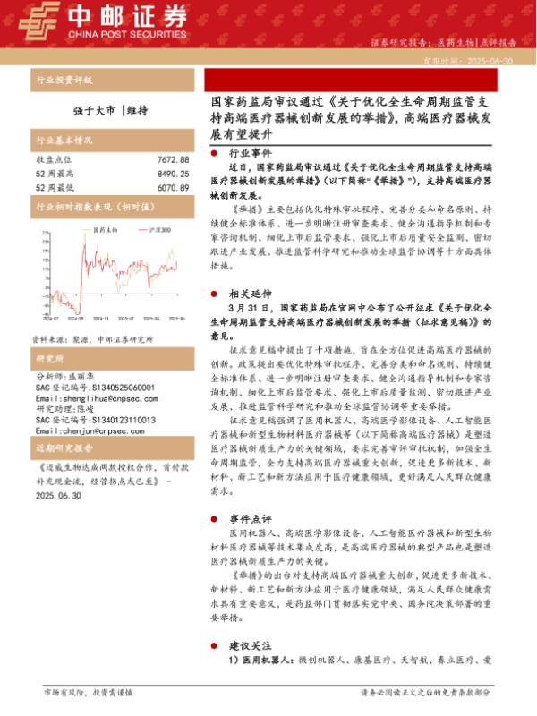 【中邮证券】【20250630】关于优化全生命周期监管支持高端医疗器械创新发展的举措-4页 证券期货研究报告