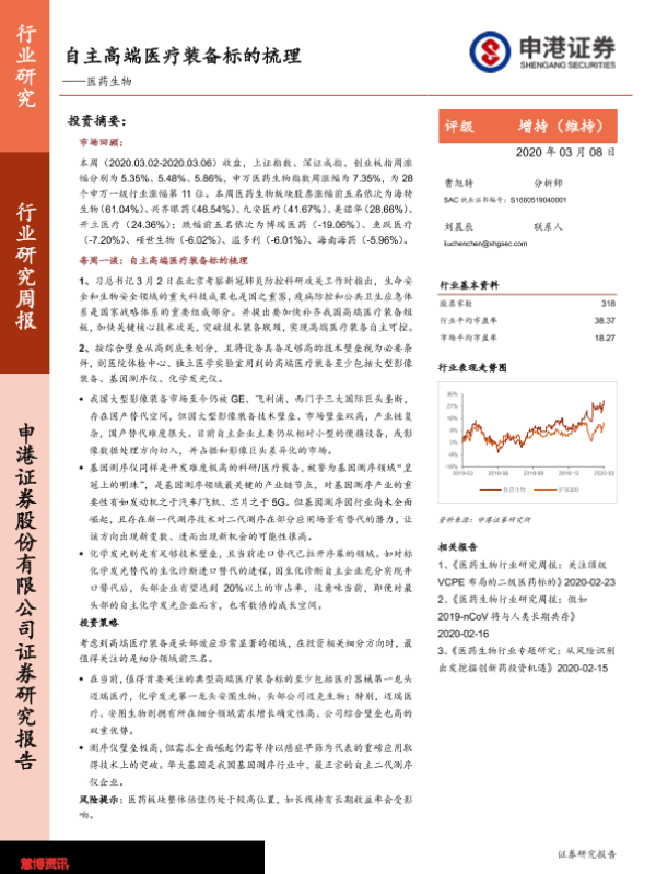 【渤海证券】【20200303】加快高端医疗装备建设,夯实进口替代主基调-5页 行业研究