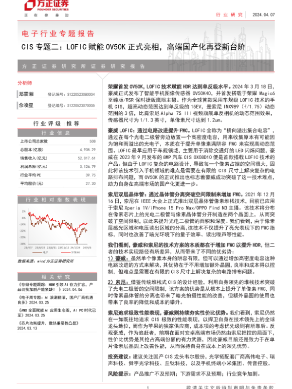 【方正证券】【20240407】电子行业专题报告-CIS专题二:LOFIC赋能OV50K正式亮相,高端国产化再登新台阶-13页 行业研究