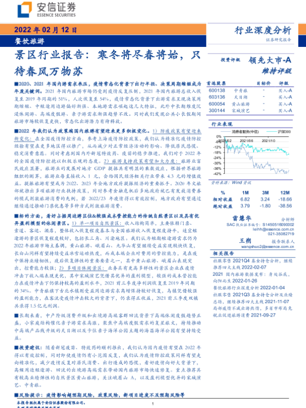 【安信证券】【20220212】景区行业报告:寒冬将尽春将始,只待春风万物苏-40页 行业研究