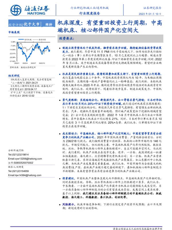 【海通证券】【20230110】机床深度:有望重回投资上行周期,中高端机床、核心部件国产化空间大-29页 行业研究