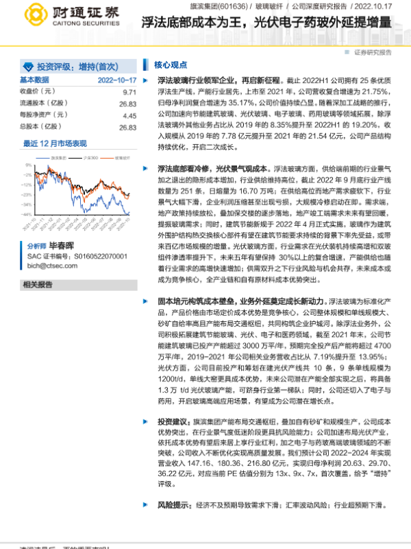【财通证券】【20221017】浮法底部成本为王,光伏电子药玻外延提增量-52页 行业研究