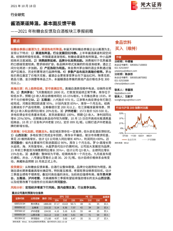 【光大证券】【20211018】2021年秋糖会反馈及白酒板块三季报前瞻:酱酒渠道降温,基本面反馈平稳-10页 行业研究