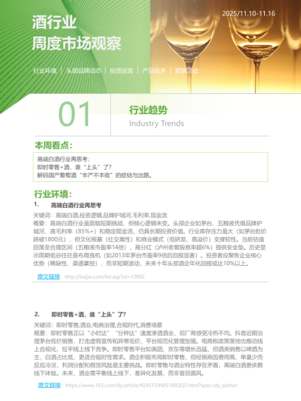 【艾瑞咨询】【202511】酒行业周度市场观察-9页 市场调研
