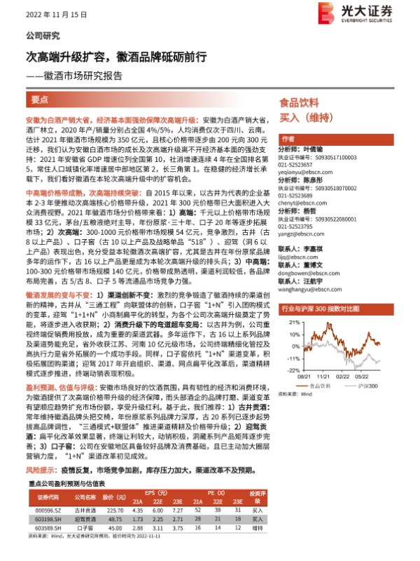 【光大证券】【20221115】20221115-光大证券-徽酒市场研究报告:次高端升级扩容,徽酒品牌砥砺前行-40页 行业研究