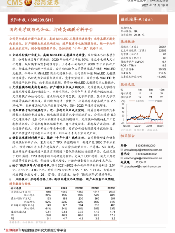 【海通证券】【20211119】国内光学膜领先企业,打造高端膜材料平台-23页 行业研究