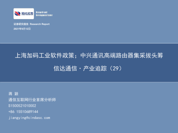【信达证券】【20210912】通信行业·产业追踪(29):上海加码工业软件政策;中兴通讯高端路由器集采拔头筹-53页 行业研究