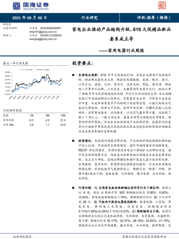 【国海证券】【20210606】家电企业推动产品结构升级,618大促精品新品套系成主导-13页 行业研究