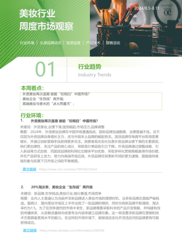 【艾瑞咨询】【20240805】2024年第33周-美妆行业周度市场观察-7页 行业研究