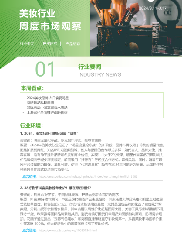 【艾瑞咨询】【20240310】2024年第7周:美妆行业周度市场观察-5页 行业研究