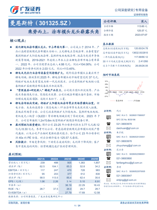 【广发证券】【20230707】曼恩斯特(301325.SZ)乘势而上,涂布模头龙头崭露头角-31页 行业研究