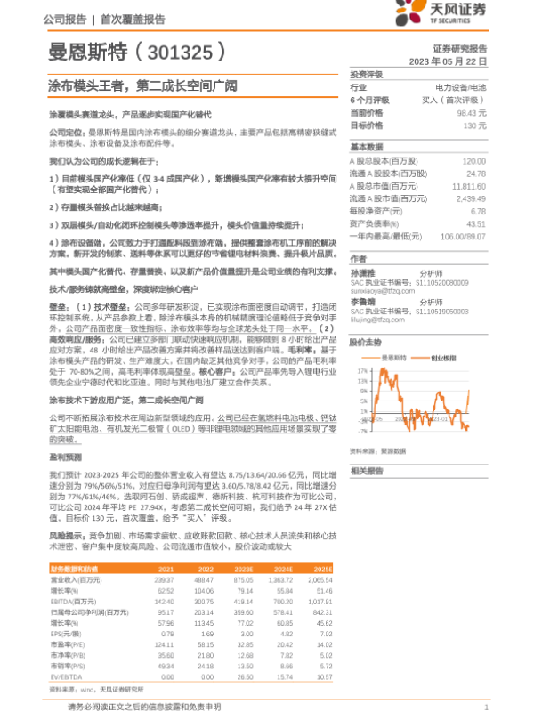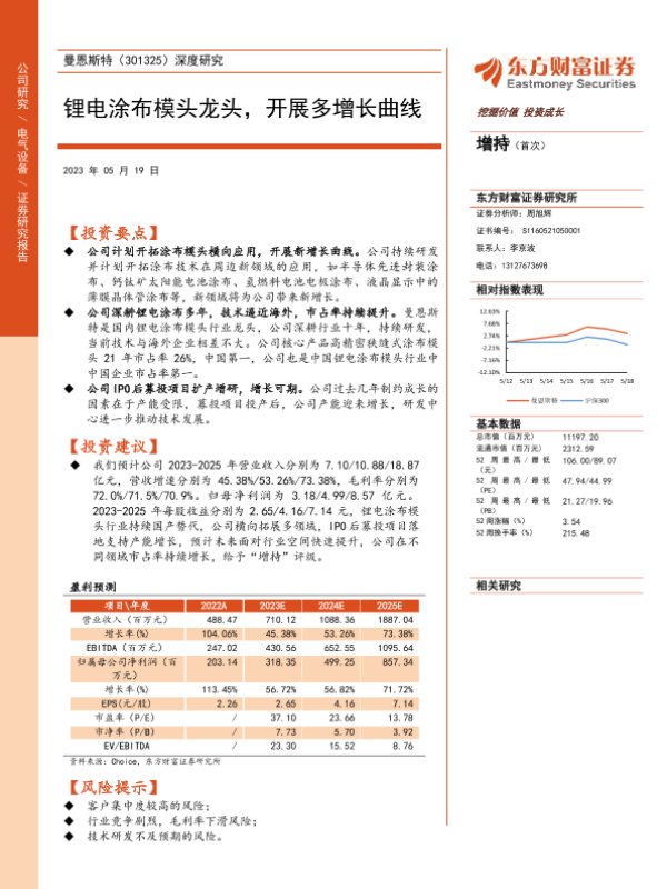 【东方财富证券】【20230519】20230519-东方财富证券-曼恩斯特-301325.SZ-深度研究:锂电涂布模头龙头,开展多增长曲线-29页 行业研究