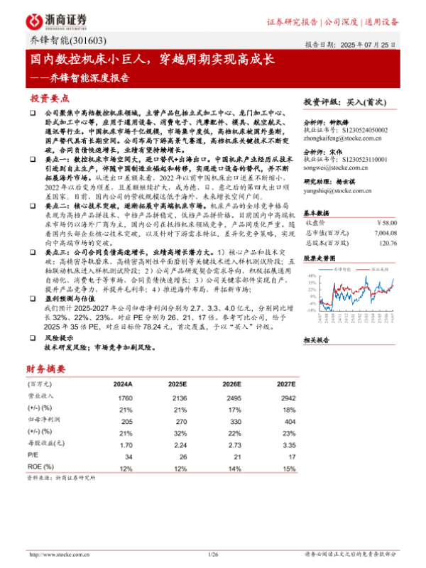 【浙商证券】【20250725】乔锋智能深度报告_国内数控机床小巨人_穿越周期实现高成长-26页 证券期货研究报告