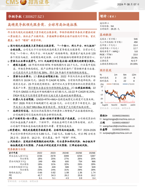 【海通证券】【20240807】华测导航(300627)高精度导航领先服务商,全球布局加速拓展-36页 行业研究