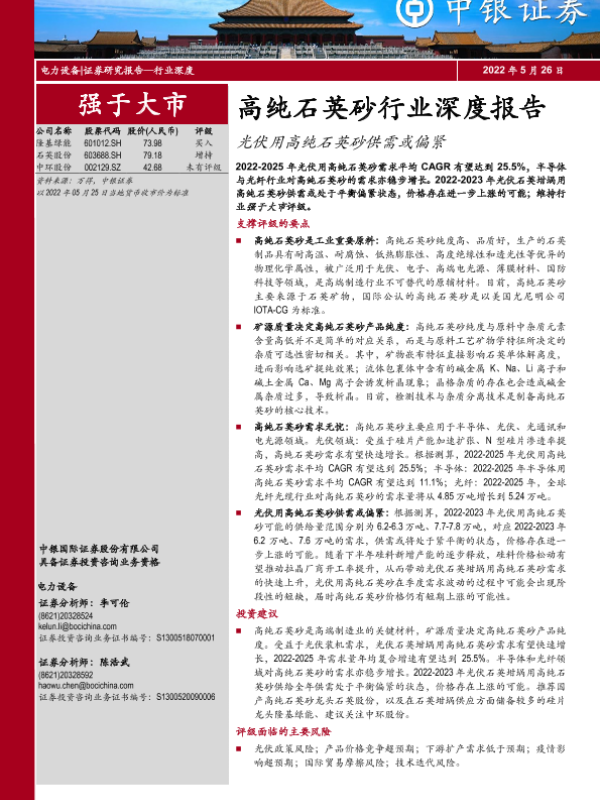【中银证券】【20220526】高纯石英砂行业深度报告:光伏用高纯石英砂供需或偏紧-48页 行业研究