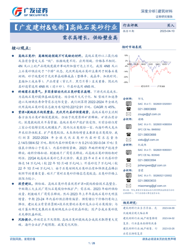 【广发证券】【20230410】高纯石英砂行业:需求高增长,供给壁垒高-28页 行业研究