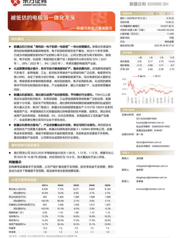 【东方证券】【20230801】新疆众和首次覆盖报告:被低估的电极箔一体化龙头-34页 行业研究