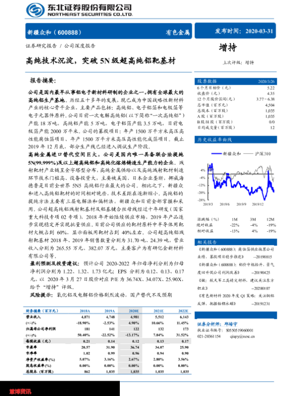 【东北证券】【20200331】高纯技术沉淀,突破5N级超高纯铝靶基材-30页 行业研究
