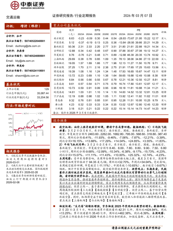 【中泰证券】【202603】油价冲击关注航空超跌布局机会,避险需求提升持续推荐高速公路-25页 证券期货研究报告