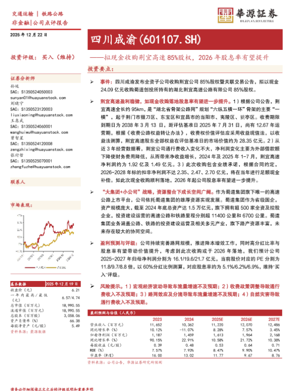 【华源证券】【202512】拟现金收购荆宜高速85%股权,2026年股息率有望提升-3页 证券期货研究报告