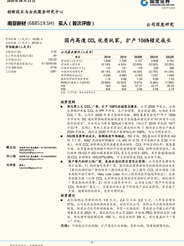 【国金证券】【20200823】国内高速CCL优质玩家,扩产106%锁定成长-31页 行业研究