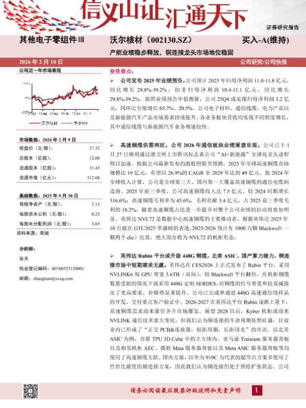 【山西证券】【202602】产能业绩稳步释放,铜连接龙头市场地位稳固-5页 证券期货研究报告