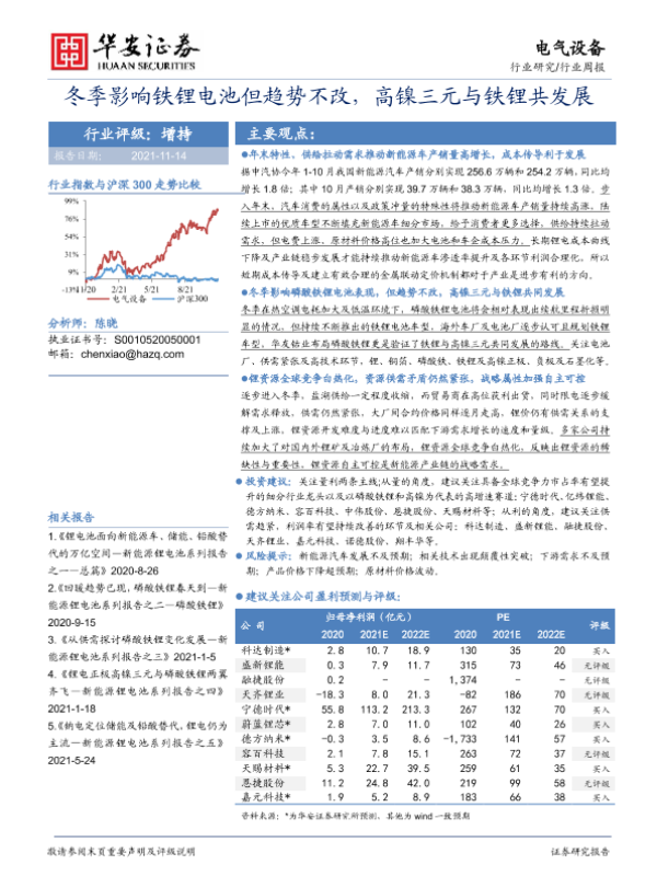 【华安证券】【20211114】电气设备行业周报:冬季影响铁锂电池但趋势不改,高镍三元与铁锂共发展-23页 行业研究