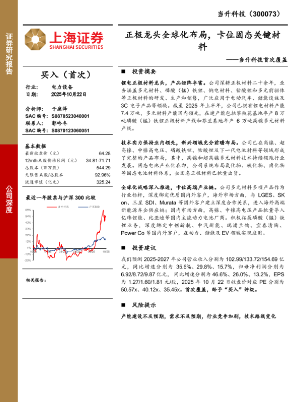 【上海证券】【2025】正极龙头全球化布局,卡位固态关键材料-20页 证券期货研究报告