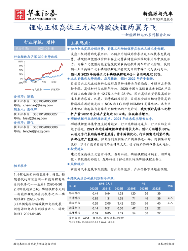 【华安证券】【20210118】锂电正极高镍三元与磷酸铁锂两翼齐飞-31页 行业研究