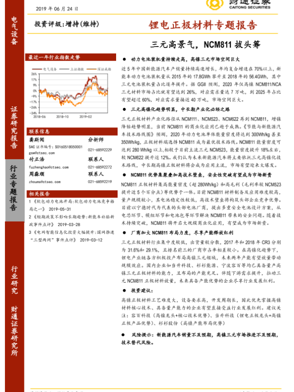 【财通证券】【20190624】锂电正极材料专题报告:三元高景气,NCM811拔头筹-34页 行业研究