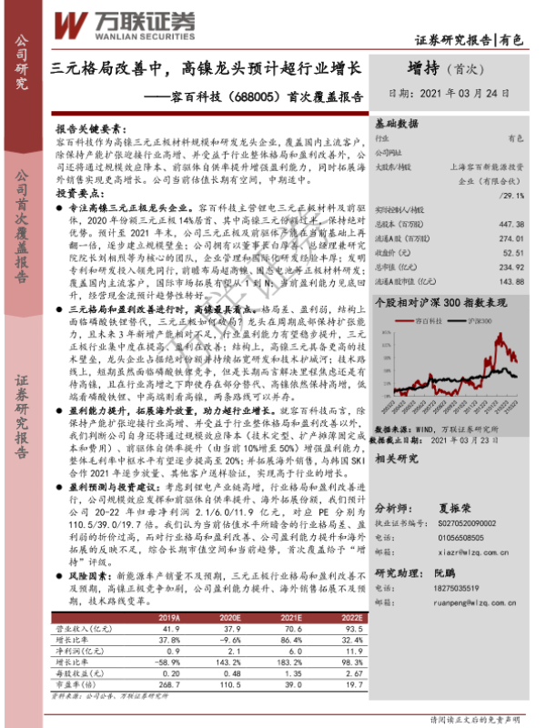 【万联证券】【20210324】20210324-万联证券-容百科技-688005.SH-首次覆盖报告:三元格局改善中,高镍龙头预计超行业增长-21页 行业研究