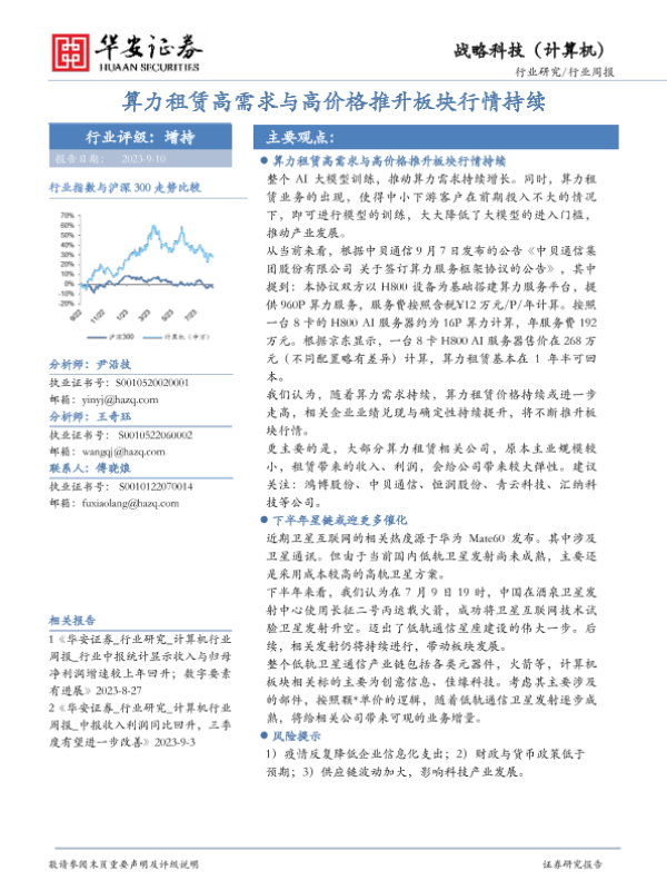 【华安证券】【20230910】20230910-华安证券-战略科技(计算机)行业周报:算力租赁高需求与高价格推升板块行情持续-13页 行业研究